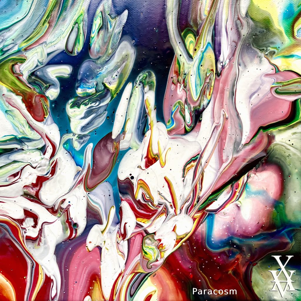 I’ve summoned the muses to give birth to ‘Paracosm’, a protean instrumental piece in which I’ve distilled all my inspiration and know-how. Throughout its 26 minutes, you’ll plunge into the progressive rock of my imaginary worlds! Tinged with new-age bells, flutes, pads and majestic keyboards, or drenched in modern metal with its futuristic, sometimes tribal sounds, the piece deploys a rich instrumentarium: Nylon-string guitars for a Mediterranean interlude, fretless bass for jazz choruses, acoustic guitars to sublimate kaleidoscopes of arpeggios, electronic sounds with phase rotations, resounding sound effects and, of course, my faithful electric guitars for chiselled rhythms, Olympian solos and celestial clear tones. « Paracosm’ is like the painting that represents it, a veritable firework display of elegant harmonic progressions, a symphony of colourful melodies, an ode to my cosmic twin, a castell of bouquets of notes…